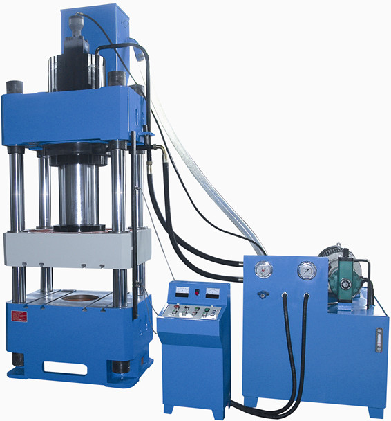 液壓機(jī)基本原理是油泵把液壓油輸送到集成插裝閥塊,通過(guò)各個(gè)單向閥和溢流閥把液壓油分配到油缸的上腔或者下腔,在高壓油的作用下,使油缸進(jìn)行運(yùn)動(dòng).液壓機(jī)是 利用液體來(lái)傳遞壓力的設(shè)備。液體在密閉的容器中傳遞壓力時(shí)是遵循帕斯卡定律。四柱液壓機(jī)的液壓傳動(dòng)系統(tǒng)由動(dòng)力機(jī)構(gòu)、控制機(jī)構(gòu)、執(zhí)行機(jī)構(gòu)、輔助機(jī)構(gòu)和工作介質(zhì)組成。動(dòng)力機(jī)構(gòu)通常采用油泵作為動(dòng)力機(jī)構(gòu),一般為積式油泵。為了滿足執(zhí)行機(jī)構(gòu)運(yùn)動(dòng)速度的要求, 選用一個(gè)油泵或多個(gè)油泵。低壓(油壓小于2.5MP)用齒輪泵;中壓(油壓小于6.3MP)用葉片泵;高壓(油壓小于32.0MP)用柱塞泵。各種可塑性 材料的壓力加工和成形,如不銹鋼板的擠壓、彎曲、拉深及金屬零件的冷壓成形,同時(shí)亦可用于粉末制品、砂輪、膠木、樹(shù)脂熱固性制品的壓制。